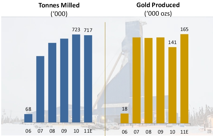 Aurizon Mines heeft in dit gebied een zestal mijnprojecten lopen. De Casa Berardi mijn is van deze mijnen de bekendste, maar ook de enige mijn waar momenteel productie plaatsvindt. Deze mijn is voor 100% in bezit van Aurizon. De mijn bestaat uit een ‘open pit’ en ‘underground’ gedeelte. Sinds de start van de goudproductie in 2006 heeft Aurizon hier 640.000 ounces goud uit de grond gehaald. Ondanks de iets lagere productie van 141.000 ounces goud in 2010, weet Aurizon toch jaarlijks gemiddeld 160.000 ounces goud te produceren (zie afbeelding).