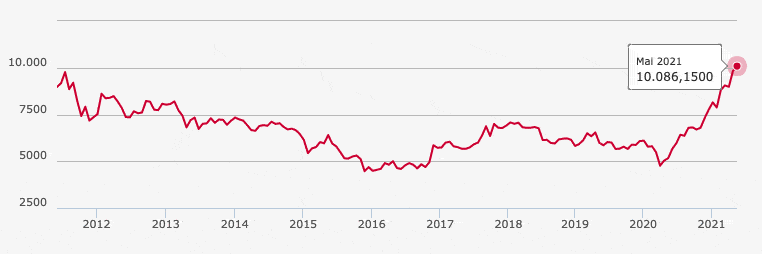 En omdat de Chinese economie na de coronaschok weer op volle toeren draait, neemt ook de vraag toe. Volgens de Chinese douane steeg de economische productie van het land in het eerste kwartaal van 2021 met 18 procent en de invoer met maar liefst 28 procent. Economische stimuleringsprogramma’s van de staat ondersteunen de opleving. Net als in de VS: triljoenen nieuwe dollars zouden de economie uit de Corona dal moeten leiden. De EU probeert iets soortgelijks met haar wederopbouwfonds van miljarden dollars.
