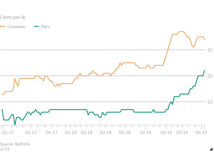 Ook stoppen steeds meer koffieboeren met hun bedrijf. Het gevolg is, dat de aanvoer van hoge kwaliteit arabicabonen uit Centraal Amerika en landen als Peru en Colombia stagneert en zelfs daalt.