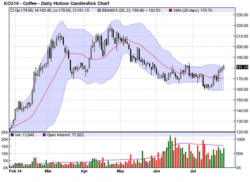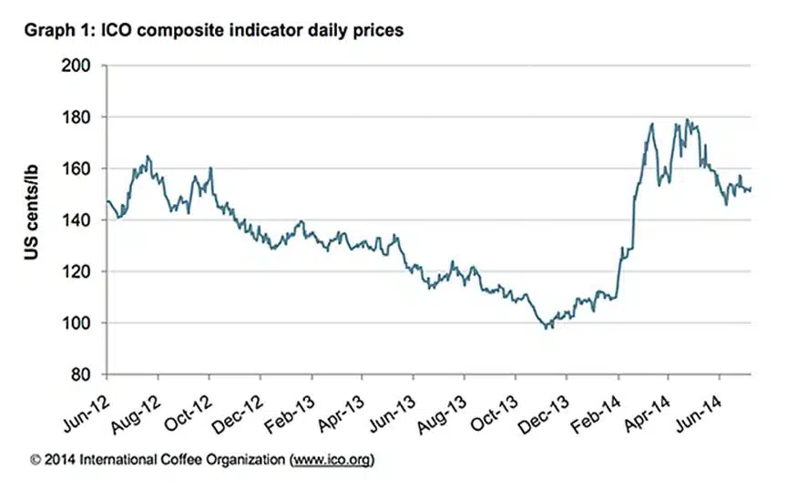 In eerste instantie hebben de koffieboeren het gelijk aan hun kant gekregen. Nog in het begin van juli kwam een bureau als INTL FCStone met het weinig opwekkend bericht, dat de prijs voor een pond koffie kon dalen tot $ 1,50. Dat was toen ruim $ 0,16 cent beneden de geldende marktprijs. Het aanbod van koffie viel veel groter uit dan verwacht. Niet alleen verliep de oogst in juni geheel naar wens, maar bovendien brachten veel boeren hun voorraden uit 2012 en 2013 naar de markt om nog te kunnen profiteren van een voor hen aantrekkelijk prijsniveau.