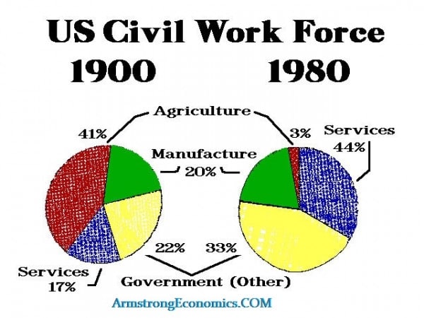 Het kostte de Dow Jones Industrials 26 jaar om de high van 1929 opnieuw te testen. De Grote Depressie zette de civiele beroepsbevolking op zijn kop. Er was de Tweede Wereldoorlog voor nodig om werkgelegenheid te creëren en de wereldbevolking terug te dringen, zodat alles weer vanaf nul kon beginnen. Ironisch genoeg was er de verbrandingsmotor nodig om de arbeid in de landbouw te vervangen, alleen maar om massale hongersnood te voorkomen.