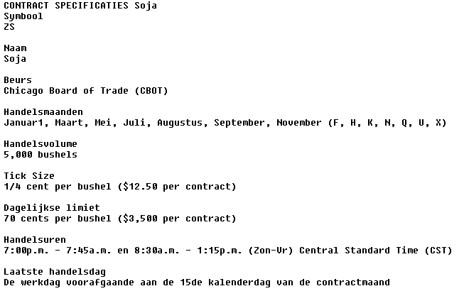 De Verenigde Staten zijn met een marktaandeel van 37% de grootste producent in de wereld gevolgd door Brazilië 28%, Argentinië 17% en China 7%. De belangrijkste markt voor soja futures is de Chicago Board of Trade. Het CBOT sojacontract is gebaseerd op levering van 5000 bushels ( een 1 US bushel is 27,2155 kg). Andere belangrijke markten voor de handel in soja-futures zijn te vinden in Brazilië, Argentinië, China en Tokyo.
