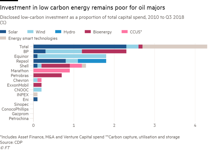 En dus aarzelen de bedrijven en weten ze niet goed hoe de zaken aan te pakken. Het risico is wel dat te lang aarzelen ten koste gaat van het klimaat, maar ook ten koste van hun bestaansrecht en toekomst. Steeds meer institutionele beleggers willen duidelijkheid over hoe de oil majors denken om te gaan met klimaatverandering. Volgens sommige is het gevaar reëel, dat de wereld bij ongewijzigd beleid steeds minder fossiele energie gaat gebruiken met alle gevolgen van dien.