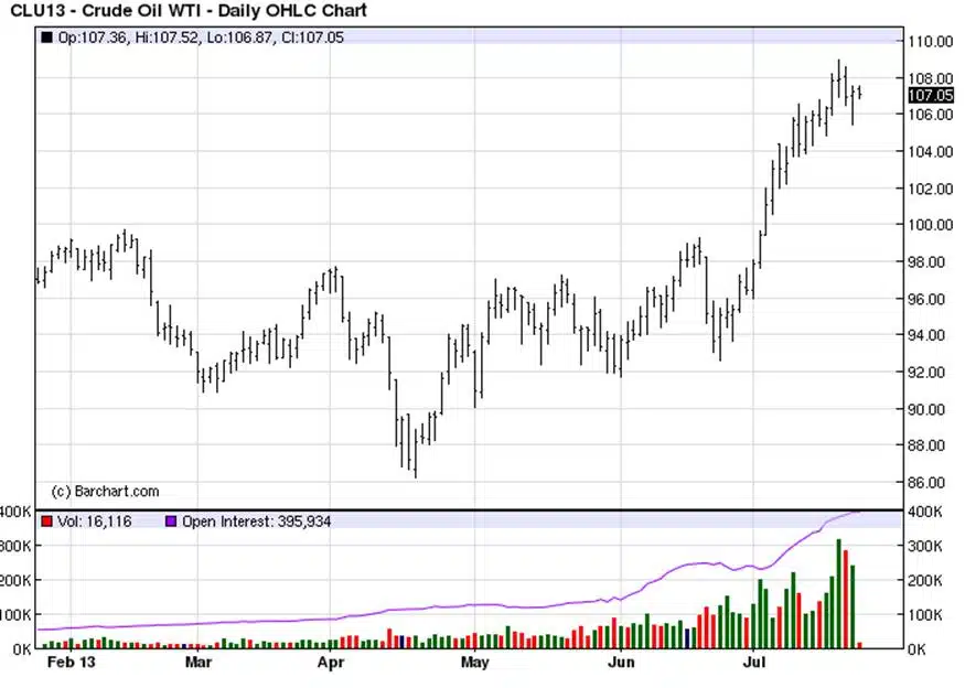 Afgelopen week kwam de prijs van een vat West Texas Intermediate (WTI) voor het eerst in 3 jaar boven die van een vat Brentolie te liggen. Vrijdag 19 juli kostte WTI $107,90. In augustus 2010 begon er een prijsverschil te groeien tussen Brent en WTI te groeien. In 2012 bedroeg het gemiddeld $ 17,50 per vat. In de loop van 2013 is het verschil in prijs steeds kleiner geworden.