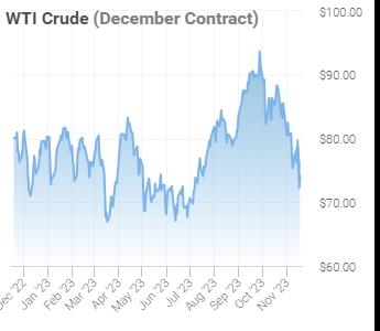 De prijzen stegen in de zomer na extra productie- en exportverlagingen door OPEC+, en werden later geholpen door angsten voor oorlog in het Midden-Oosten. Die angsten zijn niet gerealiseerd omdat het conflict lijkt te zijn beperkt tot Israël en Hamas, zonder dat de olievoorziening uit nabijgelegen regio’s wordt verstoord.