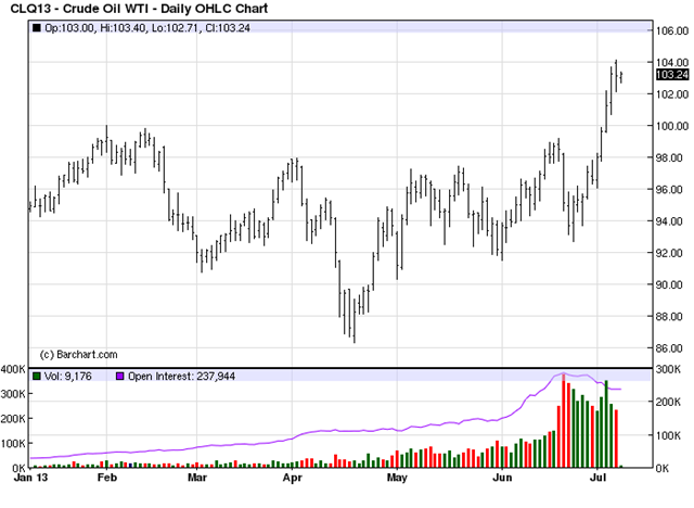 De belangrijkste factor voor de snelle stijging in een week tijd is de snel verslechterende situatie in Egypte. Woensdag 3 juli pleegde het leger in samenwerking met de Egyptische politieke oppositie een coupe en bracht zittend president Morsi ten val. Sindsdien groeit de politieke onrust snel. De achterban van Morsi, de Moslim Broederschap, heeft gezworen hun president weer aan de macht te helpen.