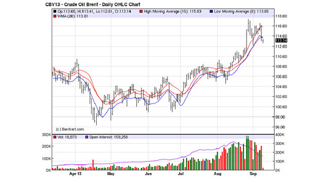 In een reactie op de politieke impasse en op het dreigende wapengekletter stegen de prijzen voor een vat olie op vrijdag 6 september met 2%. Een vat Brentolie noteerde aan het einde van de dag $ 116,12.