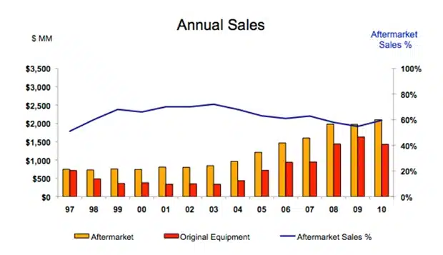 Het is dan ook niet vreemd dat 60% van de omzet wordt gegenereerd vanuit de ‘aftersales’ markt. Hierdoor wordt er een stabiele cashflow gecreëerd.
