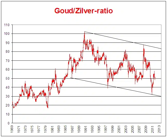 Voor 1980 klopt je verhaal, maar toen speelden de Hunt Brothers, is het niet? Het gaat mij echt puur en alleen om het feit van de ratio 1:15 als zijnde een historisch langjarig gemiddelde. Iedereen hanteert dit, maar dat wil niet zeggen dat we daar ook werkelijk weer naar toe gaan. Dit is in mijn ogen een vorm van suggestie die manipulatie in de hand werkt.