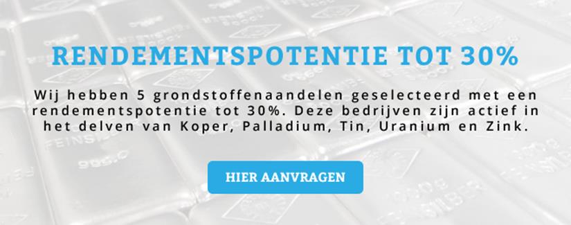 Wij hebben 5 grondstoffenaandelen geselecteerd met een rendementspotentie tot 30%. Deze bedrijven zijn actief in het delven van Koper, Palladium, Tin, Uranium en Zink.
