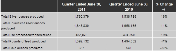 Vele tientallen miljoenen dollars zijn echter weer geïnvesteerd in upgrades van bestaande faciliteiten evenals exploratie onderzoek naar nieuwe zilveraders. Zo zijn in twee van de drie bestaande mijnen onlangs nieuwe cyanidation mills in gebruik genomen. Naast de verhoogde productie is het gebruik van cyanide een meer doeltreffende en kostefficiënte wijze om zilver uit de steen te ontrekken met bovendien een hogere zuiverheidsgraad van het eindproduct. Het resultaat is een verhoogde productiecapaciteit en –efficiëntie. Dit heeft afgelopen kwartaal voor een recordomzet gezorgd. Voor dit jaar wordt een productie van 8 miljoen oz Ag (eqv.) verwacht. Daarnaast is er een nieuwe mijn in ontwikkeling welke hoogstwaarschijnlijk in 2012 in gebruik wordt genomen. Voor 2012 wordt dan ook een productie verwacht die groter is dan 10 miljoen oz Ag (eqv.).