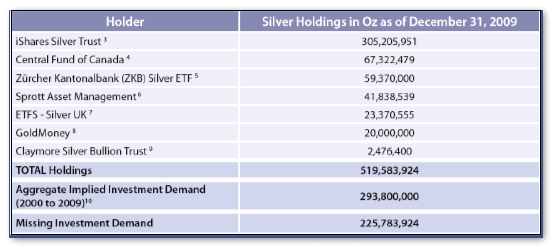 Door de huidige media aandacht worden er steeds meer beleggers bereikt. Uit voorzichtige calculaties blijkt dat grote zilver fondsen voor 500 miljoen aan zilver bezitten.