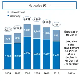 De voorlopige resultaten van 2011 komen 7,7% lager uit dan die van 2010. De definitieve cijfers worden op 29 maart 2012 bekend gemaakt. Ondanks de stabiele resultaten in Duitsland vallen de resultaten in Oost Europa behoorlijk tegen. De moeilijke omstandigheden in Griekenland, waardoor de mensen de knip op de beurs houden vanwege de kredietcrisis, maar ook Roemenië en Bulgarije laten een sterke daling zijn. Daarnaast speelden ook de ongunstige valutakoersen in Polen, Hongarije en Turkije een belangrijke rol. Toch kennen niet alle landen een daling van de omzet, zo steeg in 2011 de omzet in Luxemburg en Oekraïne.