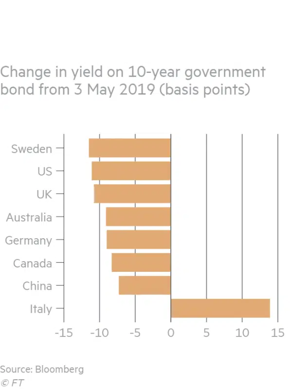 Overigens, de daling van het rendement op treasuries begon in de VS al in april. Toen leefde nog het idee, dat de handelsonderhandelingen tot een goed einde zouden komen. Aandelenkoersen gingen de lucht in. Op de obligatiemarkt overheerste echter toen de twijfel over een mogelijke versnelling van de groei van de wereldeconomie in de 2de helfte van 2019. Ook was er minder optimisme over de winstontwikkeling bij bedrijven. Een uitstroom uit aandelenfondsen ten faveure van obligatiefondsen onderschreef deze terughoudendheid.