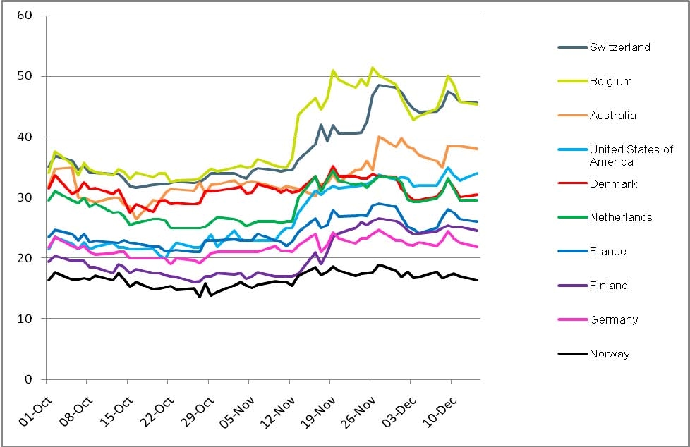 | 6 | Denmark | 2.6 | aaa | 30.5 | 8 (Up 2) |