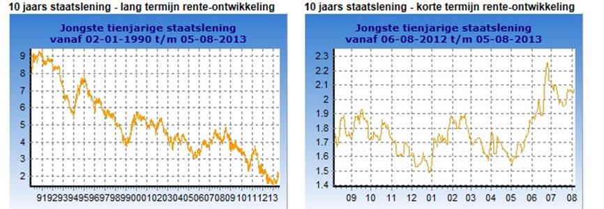 Jarenlang gold Nederland als een veilige haven voor beleggers die weinig tot geen vertrouwen hadden in landen als Italië, Griekenland of Spanje. Dankzij de aanhoudende toestroom van vluchtgeld kon hier ten lande de rente naar historisch lage niveaus dalen. Aan het begin van 2013 bedroeg de rente op 10jaars staat slechts 1,5%.