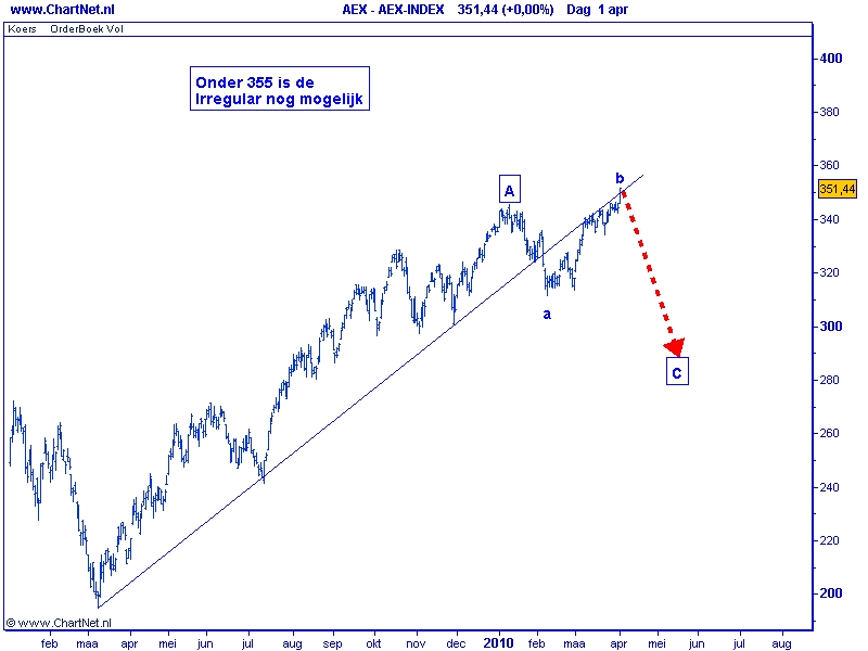 Komt dit scenario nu te vervallen? Zolang de AEX in het gebied 355 360 niet doorbreekt is dit scenario nog intact.