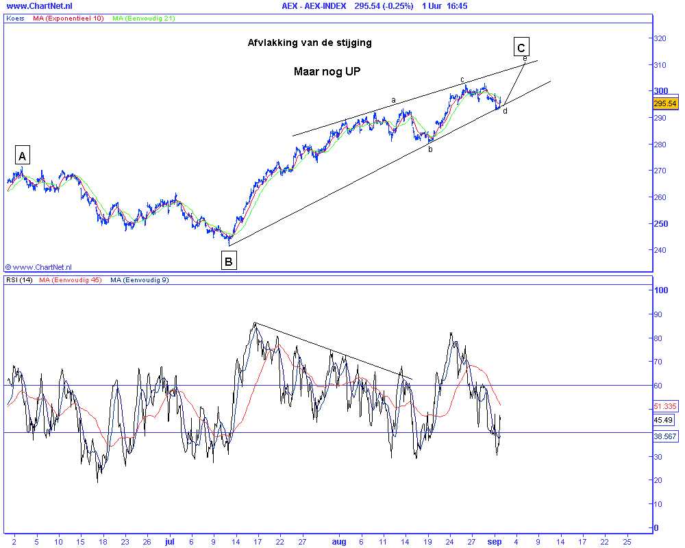 Technische analyse van de AEX op 1 september 2009 (op basis van Elliot Wave) afvlakking van de stijging