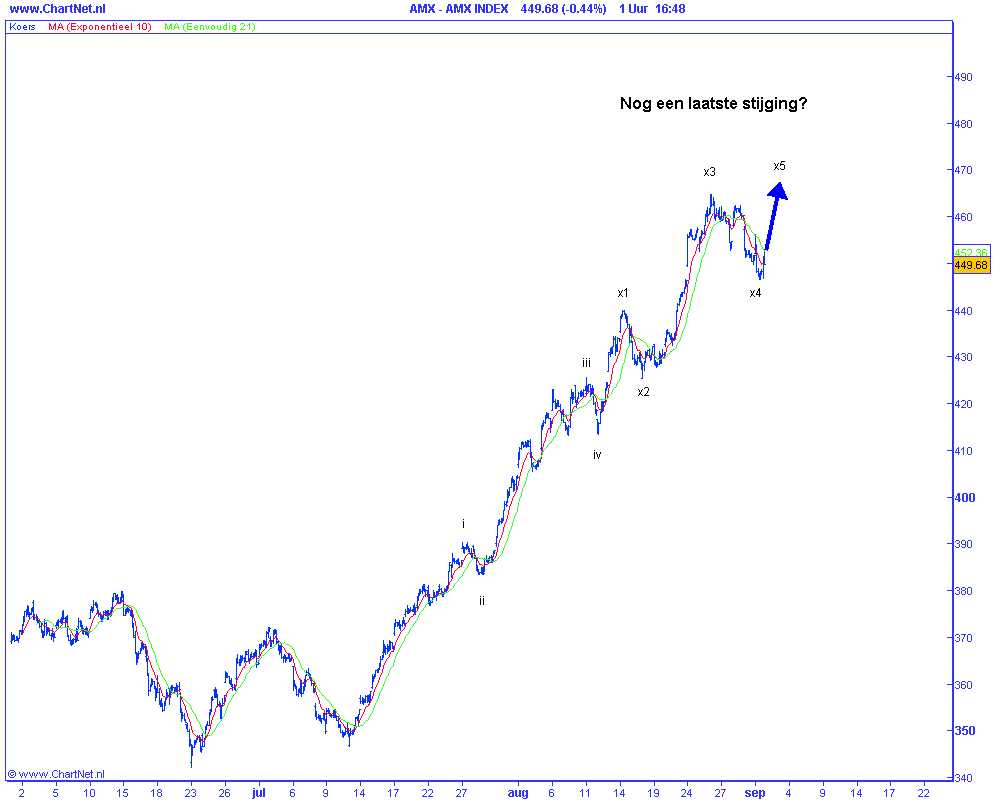 Technische analyse van de AMX op 1 september 2009 (op basis van Elliot Wave)