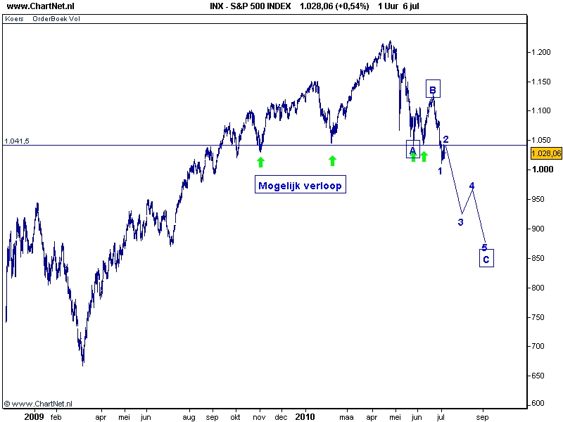 Trendmatig ziet het er voor de AEX onder 300 niet goed uit, er is dan sprake van een additioneel verkoopsignaal. Dit signaal is door de S&P 500 al gegeven. Een versnelling van de daling kan zich in theorie de komende dagen ontwikkelen waarbij voor de S&P 500 een daling tot ongeveer 870 mogelijk is.