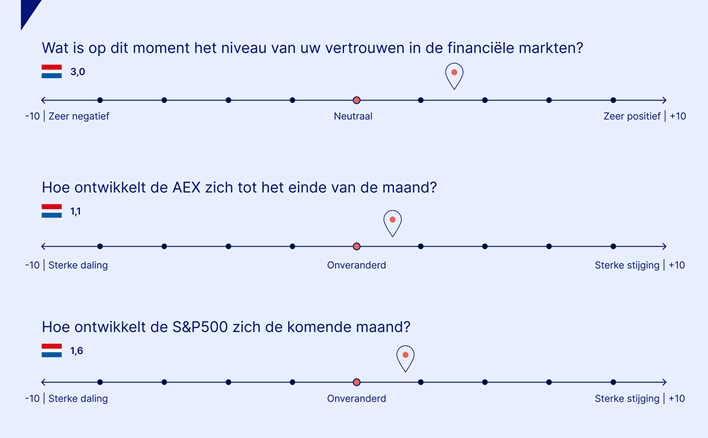 Het vertrouwen van beleggers in de financiële markten daalde van 3,4 begin april naar 3,0 begin mei op een schaal van -15 tot 15. De meting van maart noteerde nog het hoogste vertrouwen (4,1) sinds de metingen van de Saxo Market Sentiment (april 2022) zijn begonnen.