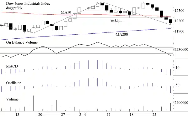 Het genstert deze ochtend weer, maar laat u niet misleiden. Neem winst als u het welletjes vindt. Er zijn vele grafieken die wij u kunnen laten zien om deze uitspraak te staven. Wij tonen u hieronder de daggrafiek van de Dow Jones Industrials Index.