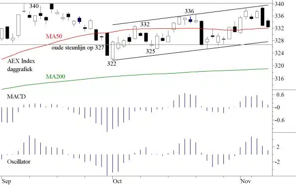 Stand van de AEX Index op het moment van schrijven (2012-11-12) 331,93