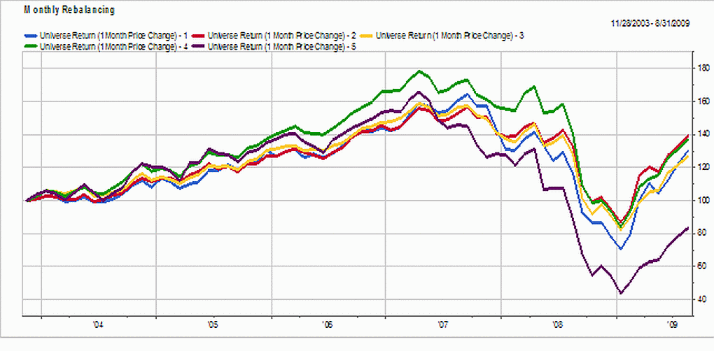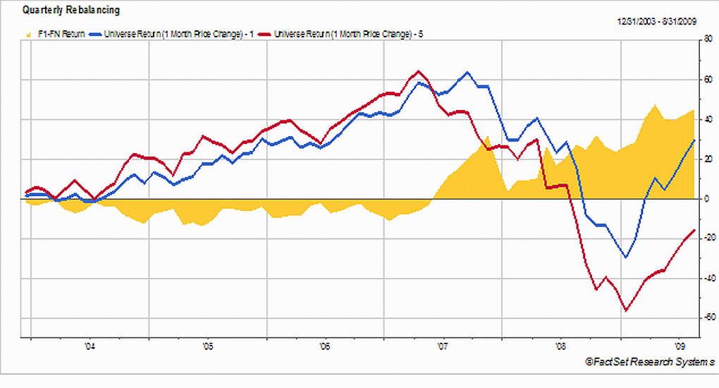 Maar soms zullen traders de 1-maands prijsmomentum gebruiken als een reversal en de underperformers opnemen in hun trading strategie daar zij de komende maand verwachten dat de achterblijvers de performance achterstand zullen goed maken.