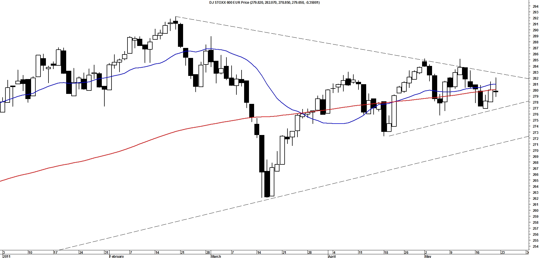 De trend in de DJ Stoxx 600 index is met een stijgend 20-daags/120-daags gemiddelde nog positief