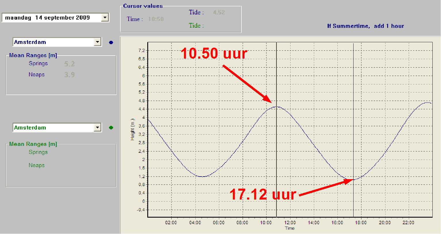 Als je de getijden van Amsterdam van vandaag bekijkt