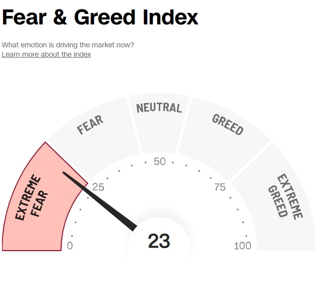 De sentimentsmeter geeft nu echter al ‘extreme fear’ aan maar dat zou veronderstellen dat we al onderweg richting de rode lijn zouden zijn. Of moet dat nog komen? Wat gaat het worden?