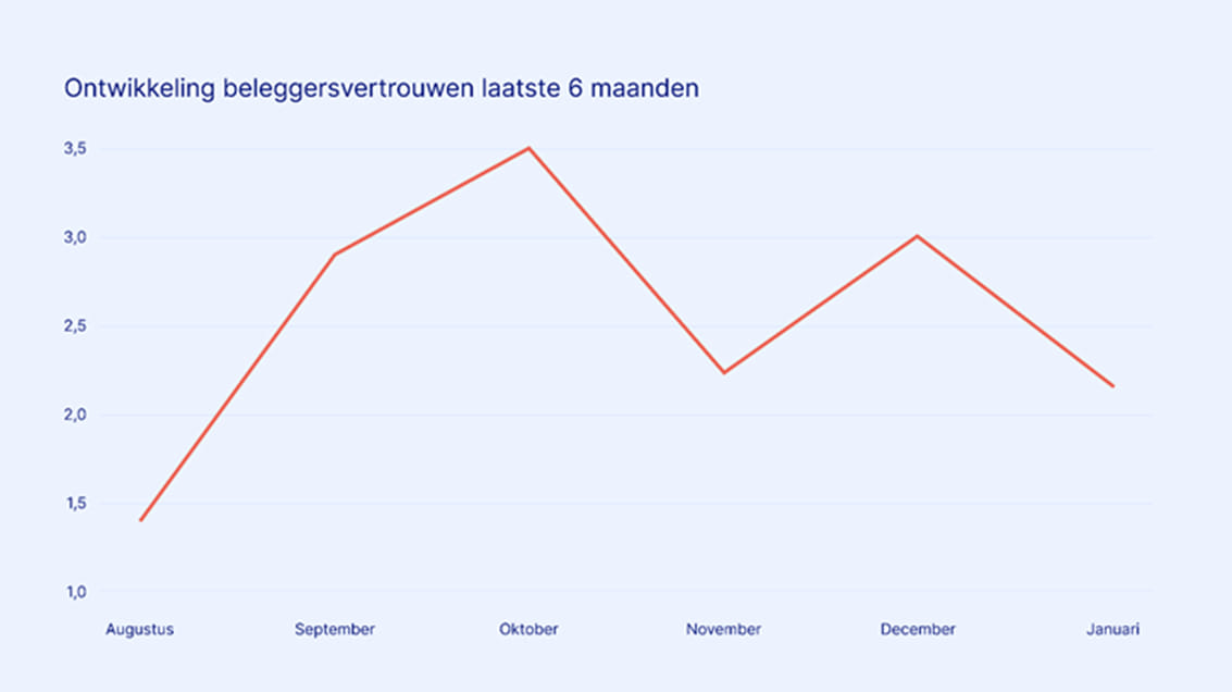 Het vertrouwen van beleggers in de financiële markten daalde van 3,0 begin december naar 2,2 begin januari op een schaal van -15 tot 15. In november lag dit cijfer nog op 2,3.