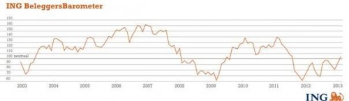 Particuliere beleggers oordelen positief over de ontwikkelingen in de afgelopen drie maanden. In de komende drie maanden verwacht 50% dat de AEX gaat stijgen. Het percentage dat het een goede tijd vindt om in meer risicovolle sectoren te beleggen, is in januari gestegen van 18% naar 25%. In een vooruitblik op 2013 zien ze economische groei als de belangrijkste factor voor een goed beleggingsjaar. Dat blijkt uit de ING BeleggersBarometer, een maandelijkse peiling van het vertrouwen onder Nederlandse particuliere beleggers.