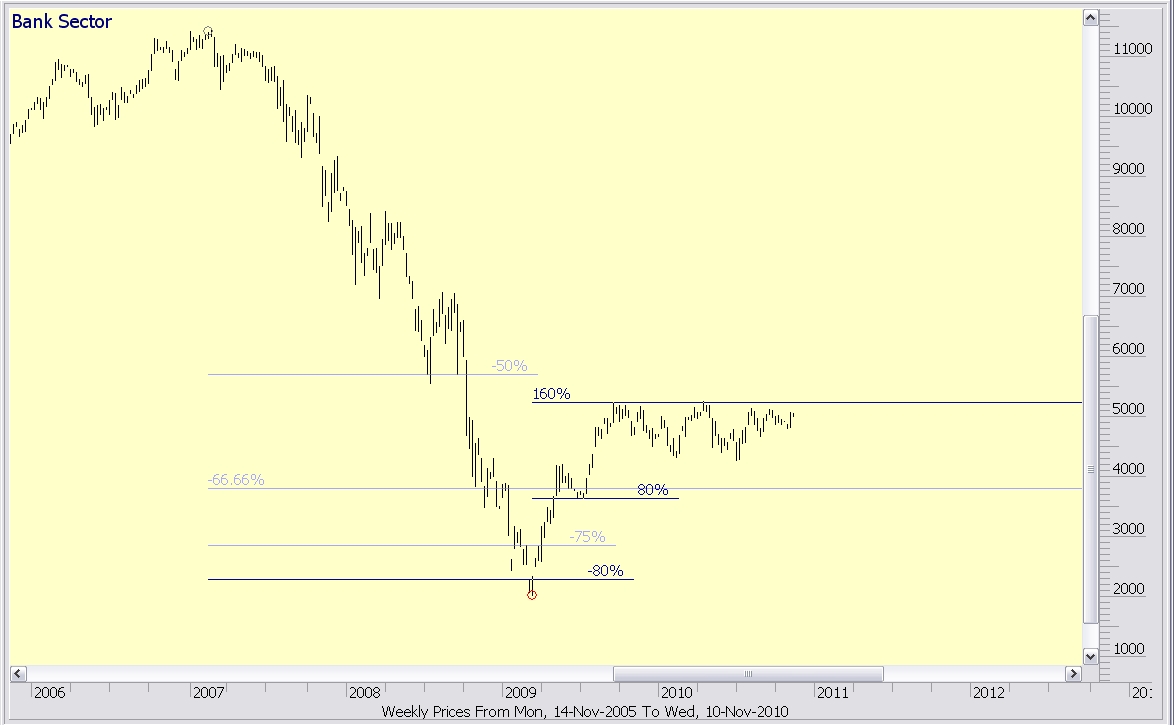 Hieronder een grafiek van de banksector in UK. Die laat nog geen spierballen zien en dat houdt me bezig. Wat niet is kan nog komen natuurlijk, maar ik volg de ontwikkeling op de voet, want een duurzame rally zonder banken is hetzelfde als dronken worden zonder alcohol te nuttigen.