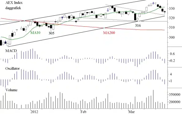 Stand van de AEX Index op het moment van schrijven (2012-03-25: 326,91)