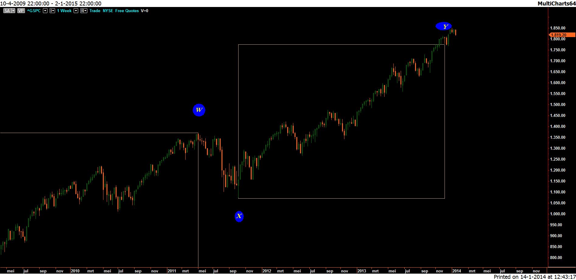 De nieuwe hoogtepunten na de 1e week van december 2013 nopen tot een bescheiden opstelling. Als er (SP 500) sindsdien een forse daling was opgetreden onder 1775 was ik zekerder geweest over de mate van koersdaling die ons te wachten stond.