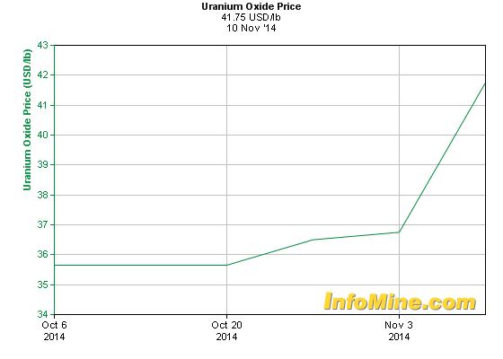 De urianiumprijs gaat door het dak. Na een periode van bijna vier jaar mogen twee reactoren van Japan volgend jaar weer in bedrijf worden genomen. De reactoren in de Sendai Nuclear Power Plant zijn slechts twee van de 48 in Japan die hun deuren moesten sluiten na de kernramp in Fukushima in 2011. Op 11 november werd de nieuwste prijs bekendgemaakt: op 41,75 USD/pond (!), een stijging van maar liefst 5 USD oftewel +13,6% week-op-week!