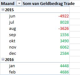 Met AexTrader, ons handelssysteem die automatisch signalen afgeeft, hebben we zeer goede zaken gedaan. We hebben geprofiteerd van de daling van de afgelopen dagen en pakten 17,83 punten oftewel € 3.566. Daarmee hebben we sinds juni van vorig jaar een winst behaald van 111 punten oftewel  € 22.306 bij een startkapitaal van € 15.000. Zie onderstaande grafiek.