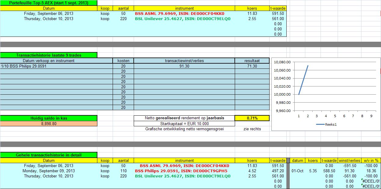 Wij zijn de AEX-Top-5 begonnen op 1 september. Wij gaan inspelen op marktbewegingen van de vijf grootste beursfondsen, zowel long als short.