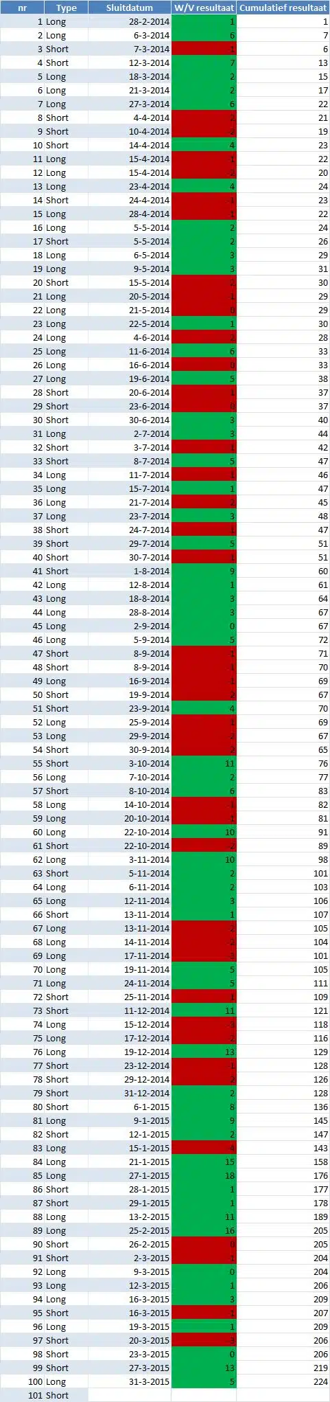 Winst/Verlies ratio is derhalve: 6,9 wat uitstekend is. Hieronder het overzicht: